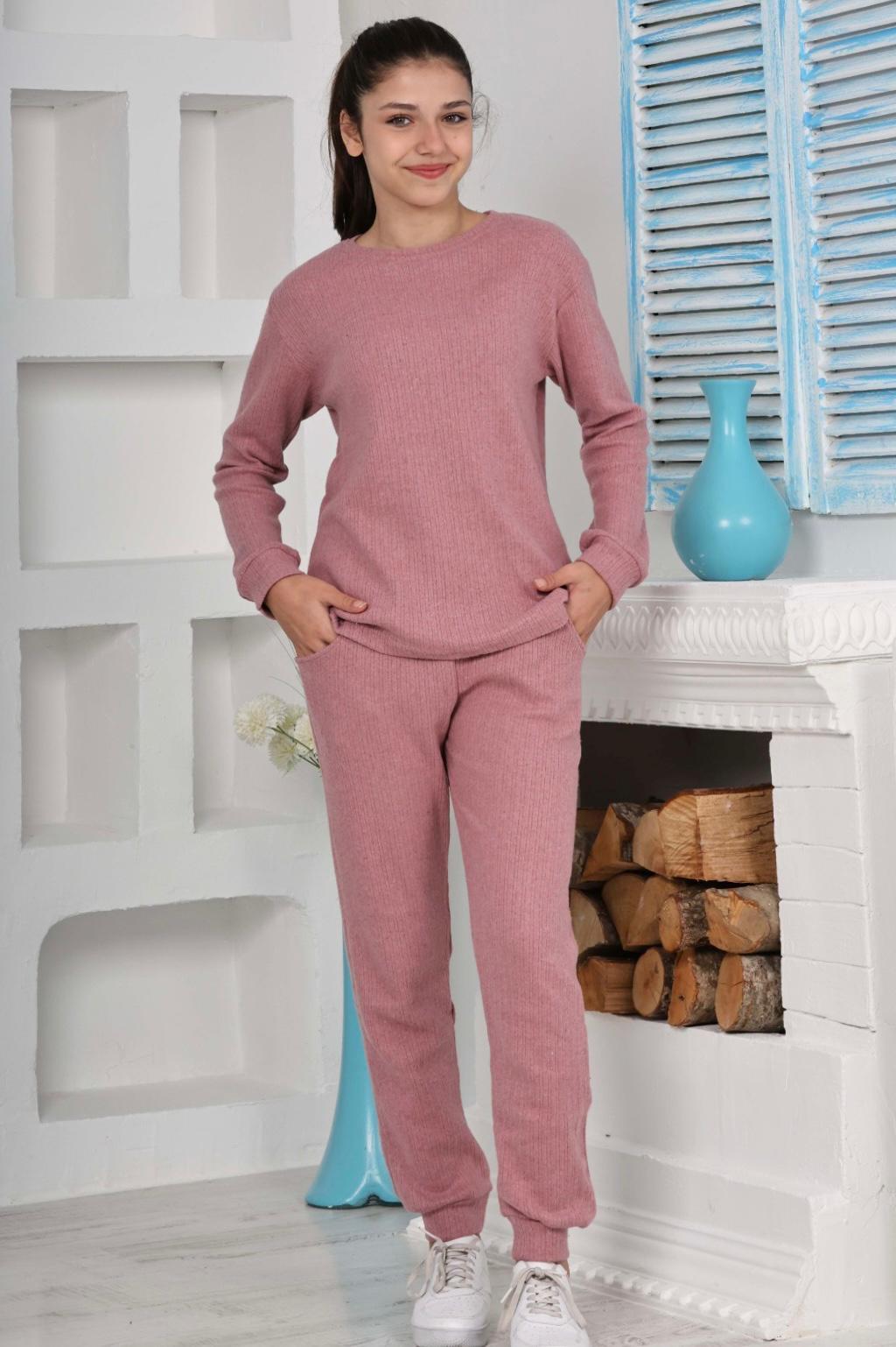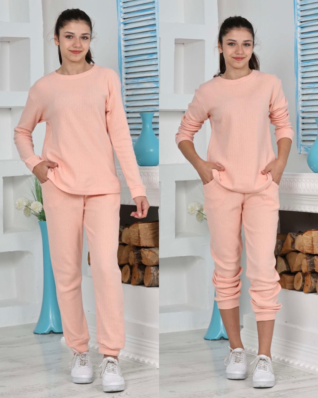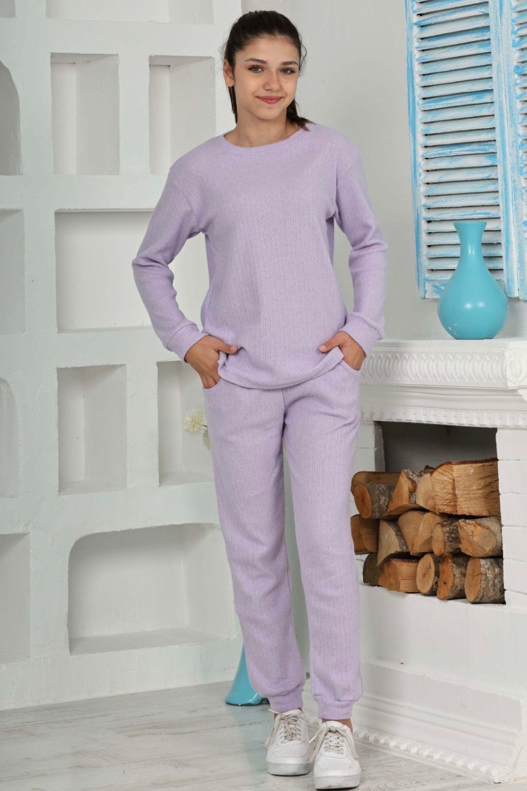 Alt kısım, yüksek kaliteli interlok kumaşı sayesinde yumuşak ve nefes alabilir bir yapıya sahiptir. Bu yumuşaklık, gece boyunca size konforlu bir uyku sağlar. Pijamanın şıklığını tamamlamak için alt kısmın ön kısmında takıma uyumlu bir şekilde şardonlu fitil detayı bulunmaktadır.